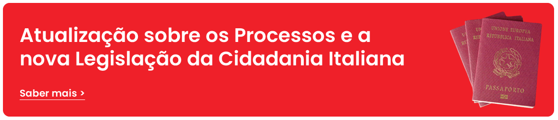 Importante: de acordo com o novo decreto-lei n. 36/2025, o direito a Cidadania Italiana por descendência passa a ser limitado a filhos e netos de cidadãos italianos nascidos na Itália. Novas modalidades processuais para outras gerações devem aguardar novos desdobramentos e decisões da corte constitucional italiana quanto a ilegalidade ou não do projeto de lei acima citado.